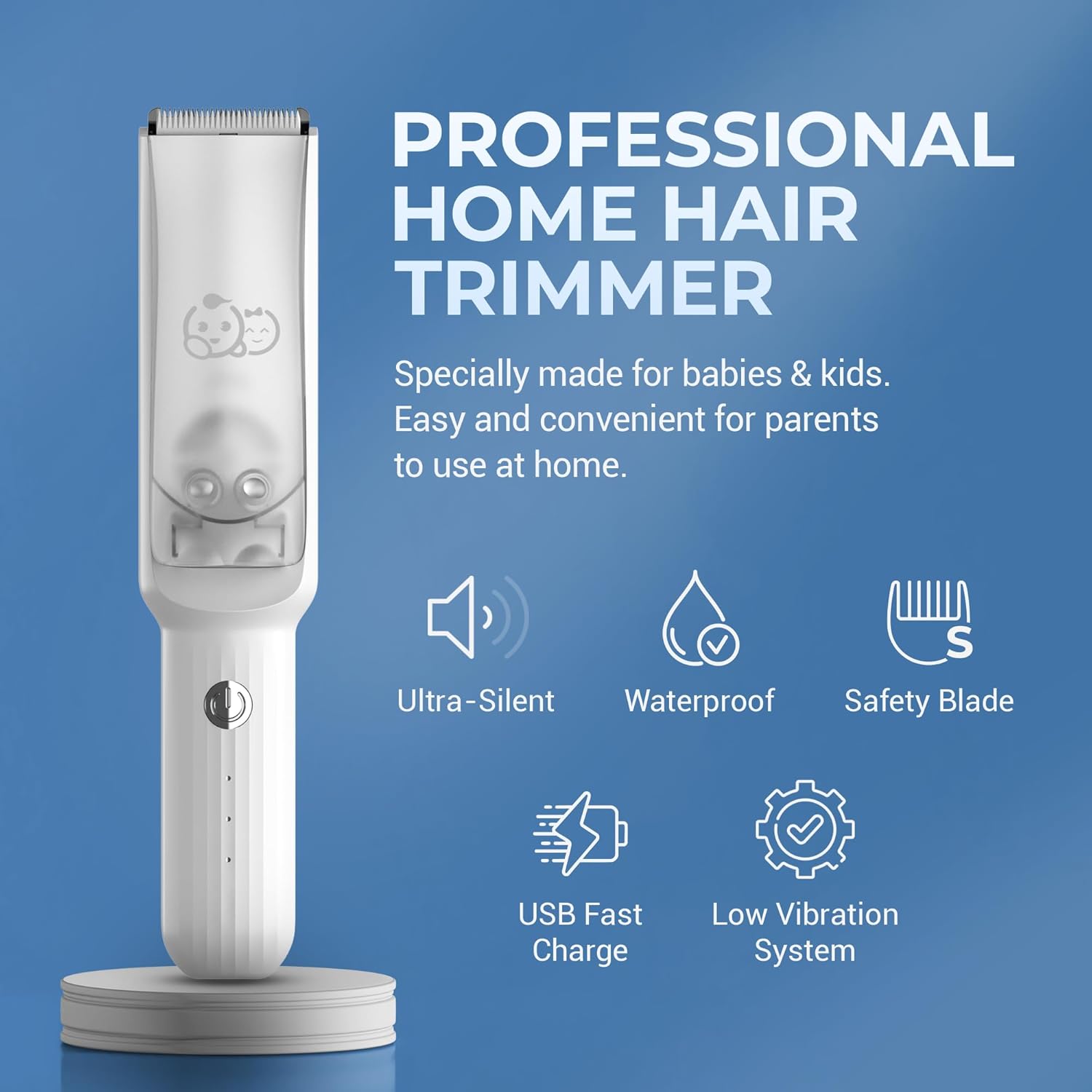 Gentle Clipping: Royal Angels baby hair trimmer is gentle for your little ones. It features non-sharp rounded ceramic clipping blades to prevent irritation to the scalp. It is also specially designed to prevent hair pulling. The shape design of the trimmer is easy to control and use. No Mess Hair Vacuum: We know how hard it is to clean up. Hair clippings are automatically vacuumed and stored into the storage case for an easier clean up. It features 2 levels of vacuum power, helping minimize loose hair all over the place. Rechargeable: Usb charging cable provided. The hair trimmer can be used for approx. 90 mins after a full charge, it allows ample run time to trim. 5 Levels of Hair length: Bare head at 1mm, attachment safety guide combs at 3mm, 6mm, 9mm, and 12mm. Quiet Motor & Vacuum: For a peaceful hair trimming experience, the motor and vacuum is designed to be low noise and low vibrations. It will not irritate your little ones. Waterproof: This baby hair trimmer is fully washable, it can be rinsed under the water after use for ease of clean. The material of the ceramic blade also prevents rusting. Bonus Accessories and Warranty: Hair trimming accessories are provided: kids apron, Sponge puff, cleaning brush, micro serrated scissors, regular scissors, comb, and 8 hair styling shape models. Royal Angels hair trimmer also comes with a 12 Months warranty and anytime support. Email us and we are here to help with any concerns.