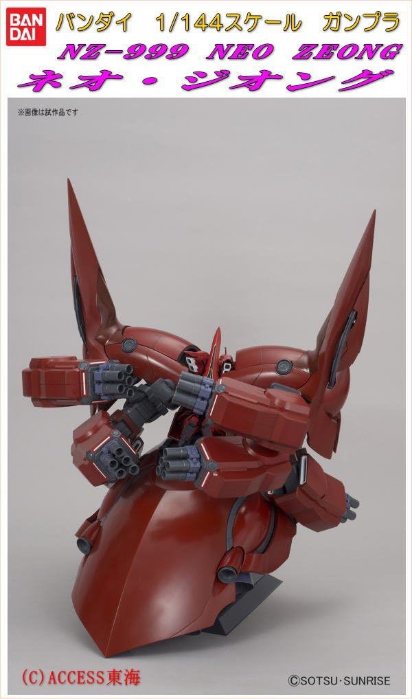 The final machine of the antagonist Full Frontal from Gundam Unicorn will be largest GunPla ever made, standing at approximately 34" Tall, rivaling even the massive Perfect Grade series. This massive mobile armor features numerous thrusters and verniers all over its body and also houses the Sinanju (included). The signature propellant tanks can be detached as it appears in the OVA. A double multi-layer system is used to support its gigantic body, which is composed of approximately 560 parts. A custom made stand is included for display. Two 1/144 bazooka used in episode 7 for Sinanju is also included.