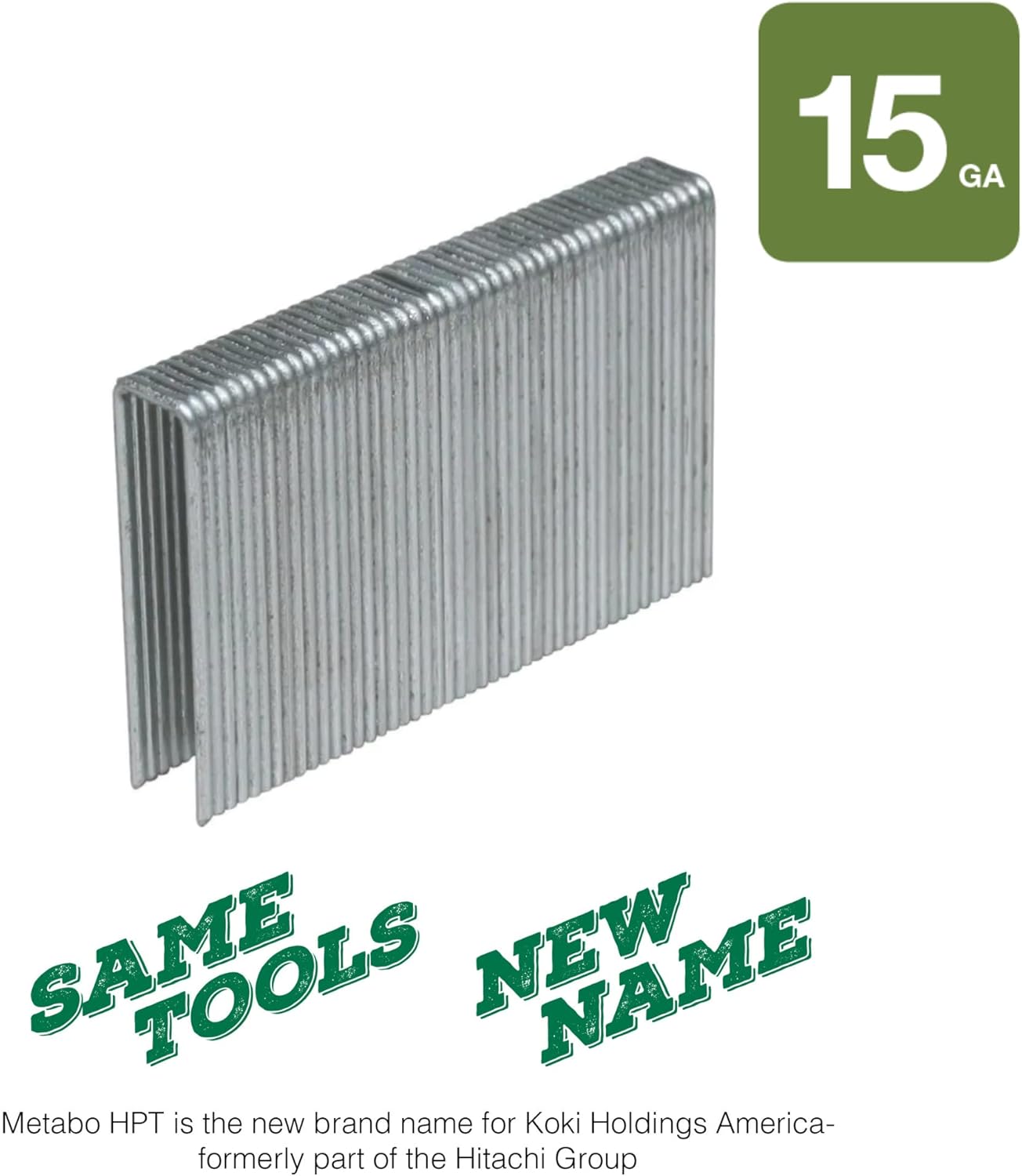 Metabo HPT 2-in 15-Ga electro galvanized flooring staples. Genuine Metabo HPT staples are manufactured at higher standards for material and workmanship to help eliminate downtime, so you can work more efficiently.Metabo HPT (formerly known as Hitachi power tools) offers an extensive line of professional grade power tools and accessories for woodworking, metalworking, drilling and fastening, concrete drilling and cutting, outdoor power equipment products as well as a complete line of pneumatic nailers, staplers, compressors and collated fasteners.