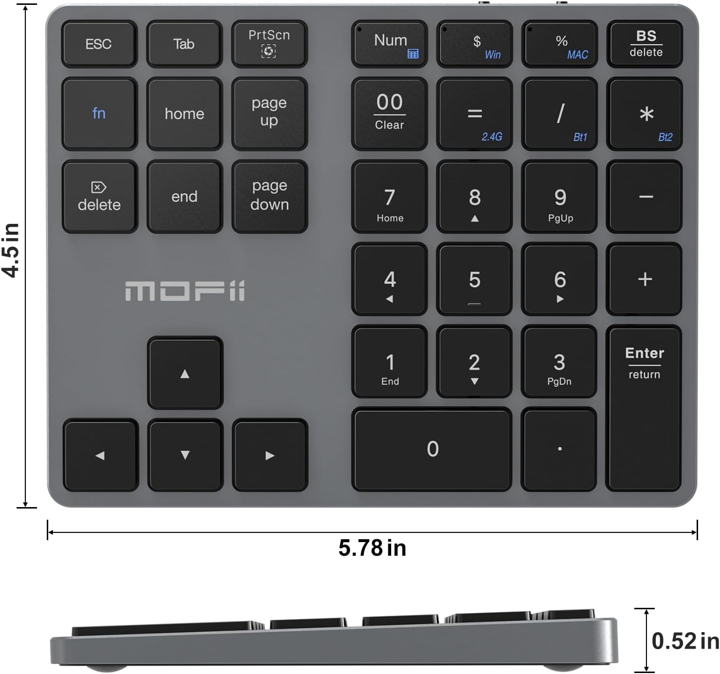 MOFII Bluetooth Number Pad for Laptop - Gray Wireless Numeric Keypad 35 Keys USB-C Rechargeable Numpad, Accounting Portable Financial Data 10 Key for Laptop/PC/Desktop/Notebook/Surface Pro