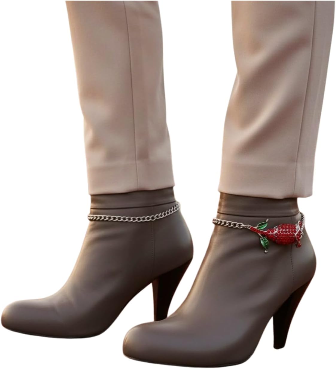 BC169 This is the kind of detail that makes people ask, “where did you get that?” BC169 brings desert-glam energy with a red rhinestone flower charm set on a silver-tone boot chain—an easy add-on that upgrades everything from denim shorts to wide-leg jeans to a breezy dress. Style tip: let the chain sit with a relaxed drape so it moves naturally. It looks intentional, feels more comfortable, and helps protect the chain from unnecessary tension.