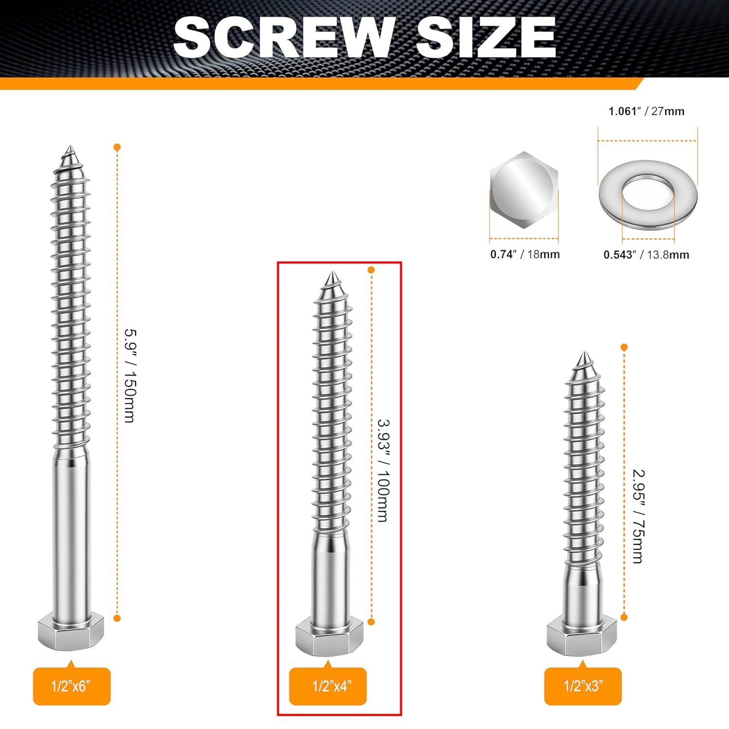 | Fastener Size | 1/2" x 4" |