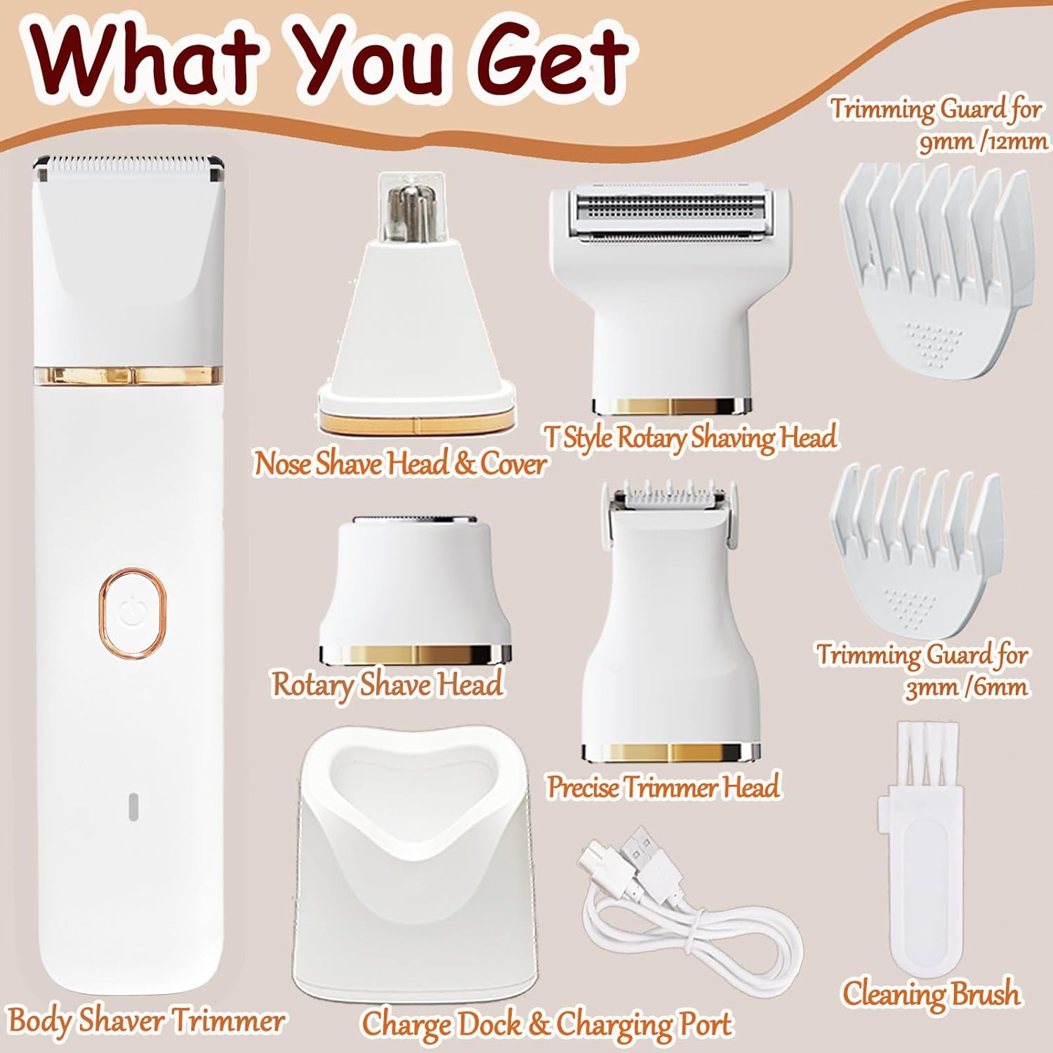 • 5-๐ข๐ง-1 ๐๐จ๐๐ฒ ๐“๐ซ๐ข๐ฆ๐ฆ๐ž๐ซ: This versatile bikini trimmer for women includes 5 interchangeable heads as electric razors for women and a trimmer for menโ€”perfect for couples! The shaver for women and manscape-focused trimmer for men covers facial and nose hair, body hair, bikini line, and cater to womenโ€™s needs for trimming sensitive areas. The all-in-one trimmer set meets all your grooming demands.