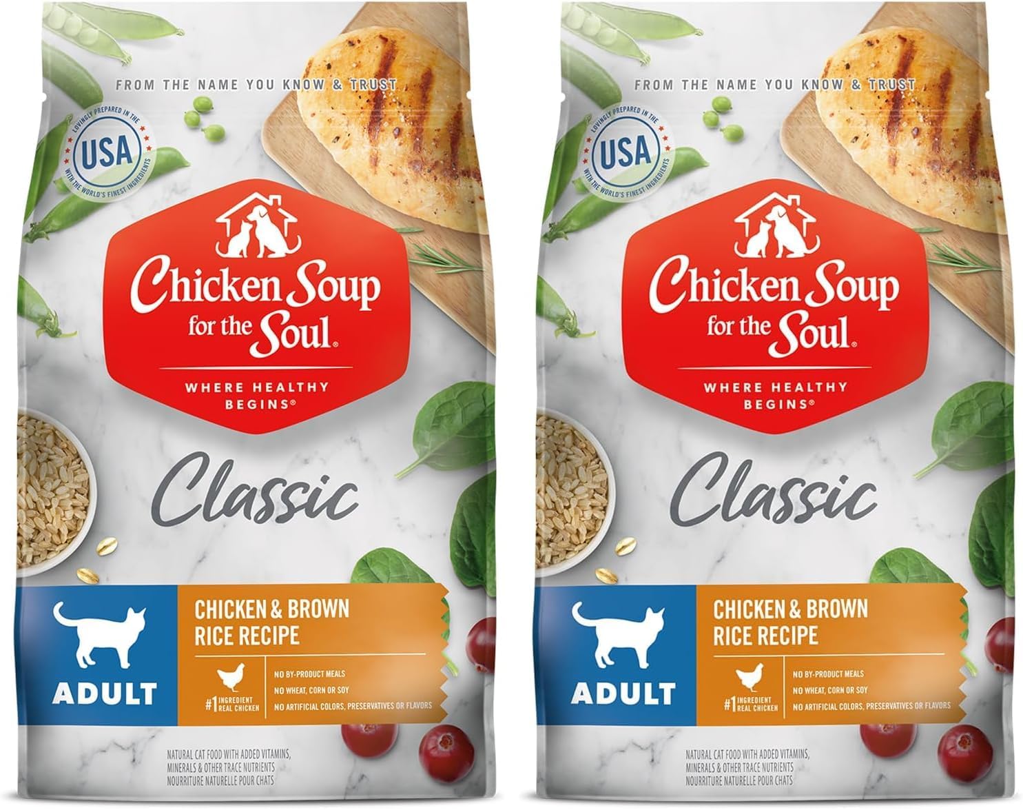 CHICKEN SOUP FOR THE SOUL knows how important food is for your cat's well-being. Through innovative formulas filled with premium nutrition, your cat can stay happy, healthy and well. Our adult cat food captures the warmth of comfort food and is made from only the highest quality ingredients including real chicken as the #1 ingredient. Served with love, this nutritionally balanced food will promote lifelong health for years of purring and playing. Made in the USA. At CHICKEN SOUP FOR THE SOUL Pet Food, we make complete, balanced meals created with solid nutrition and trusted ingredients. We keep it simple: Real food, served with real love. And we believe in helping every pet eat well—because a healthy, happy pet is a key ingredient to a healthy, happy home. Size: 13.5 pound bag of dry cat food