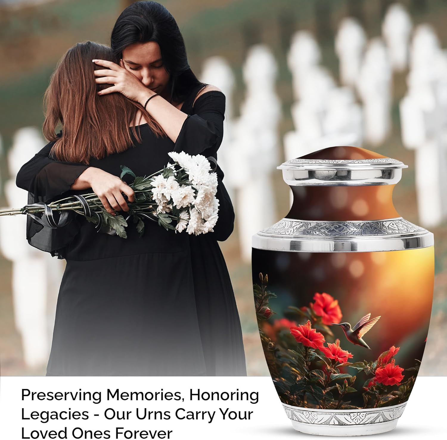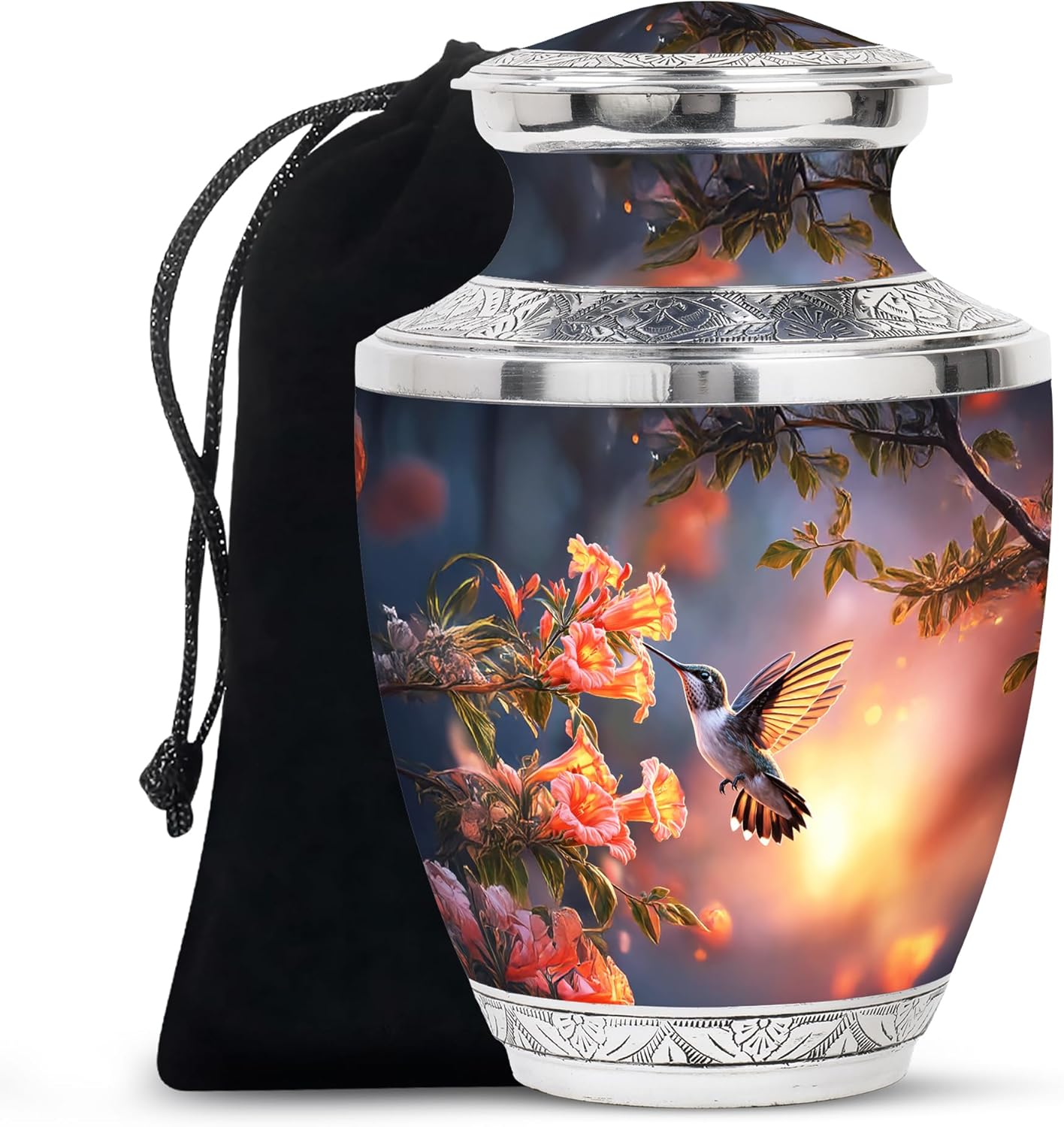 Honor your loved one with this hummingbird and flowers theme represents the delicate balance between joy and remembrance. The hummingbird, often seen as a memoriesual messenger, symbolizes resilience, peace, and your loved one ability to rise above sorrow, this urns for human ashes adult is designed to keep an adult residue for men and women, which ensures a safe and dignified resting place. Its height allows for a well-balanced and proportional design, for adult ash men to become ideal for placement in a house, memorial location or burial site for adult ash men. Despite its large ability, our urn for grandmother maintains a compact and beautiful appearance for an adult male, which makes this ashes holder for cremation ashes suitable for a mental, shelf, or dedicated monument location. Our funeral urns for human ashes adult is equipped with our threaded screw-on lids for adult women, ensuring that the ash is safely attached. This cautious closure prevents accidental spreads or leaks, providing comfort to those who want to keep the remains of their loved ones near. The surface of our urn for father is polished for perfection, with a protective coating that is a guard against scratches, fingers and environmental damage, preserves its amazing appearance for the coming years. With its strong craftsmanship, artistic details, it is an adult for human ash women with unique design. It is an ideal choice, representing, transformation comfort, strength, love and consolation, who are looking for a dignified way to honor and preserve the memory of your loved one.