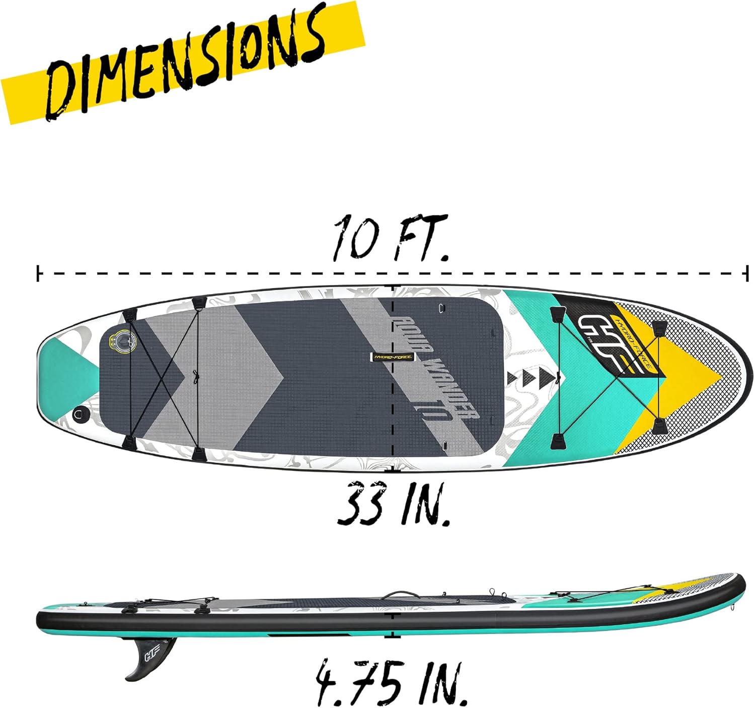 Get out and experience your next water adventure with the Hydro-Force™ Aqua Wander™ TravelTech™ Convertible Stand-Up Paddleboard Set. This all-around board is the perfect shape for flat water and small wave riding, and it can be easily converted into a kayak with the included seat and footrest.Durable Construction:This SUP is constructed with drop stitch material, a network of internal fibers that connect the top and bottom of the board. This provides exceptional strength and rigidity, similar to a hard-sided board, while still keeping it lightweight, portable and easy to store.Features:The convenient deck handle allows you to easily carry the SUP to your destination. While the elastic cord on the SUP provides secure storage for your personal items while you are out on the water. The non-slip traction pad is designed to help keep you balanced and stable as you paddle along.Simple Setup:Once you are ready to use your board, simply inflate it with the included hand pump, and you’ll be ready for a remarkable day on the water! When you are done, the air valve allows you to deflate the board in no time. The specially designed TravelTech™ construction makes this board incredibly easy to fold up and store. In fact, the construction of the board allows you to fold the Aqua Wander horizontally and vertically, making it 40% more compact than other inflatable boards. Then once it's folded, it fits neatly into the included backpack. This set also includes an adjustable paddle that can be converted to a double-bladed oar, a coiled leash and a repair kit – everything you need to have a worry-free adventure wherever you may roam.