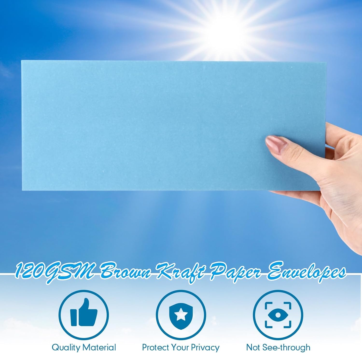 Features: Delicate design: Blue #10 business envelopes feature rustic texture and look in blue color. Kraft envelopes will add delicate and elegant flavor in your daily applications. Wide applications: Postcard invitation envelopes are suitable for most occasions, such as office, business, wedding, birthday, graduation and so on. Self adhesive invitation envelopes also can as delicate gifts for your partners and relatives. Specifications: Material: 120 GSM kraft paper Color: blue Size: approx. 4-1/8 x 9-1/2 inches Package includes: 500 X #10 kraft paper letter envelopes Notes: Manual measurement, please allow slight errors on size. The color may exist a slight difference due to different screen displays.