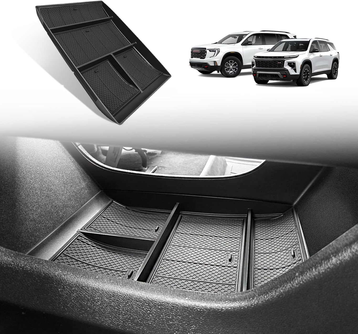 Muslogy Center Console Organizer Compatible with 2024 2025 GMC Acadia&Chevy Traverse Accessories Interior Storage Insert Tray Secret Compartment(Lower Center Console Tray+Console Organizer+Hidden Box)