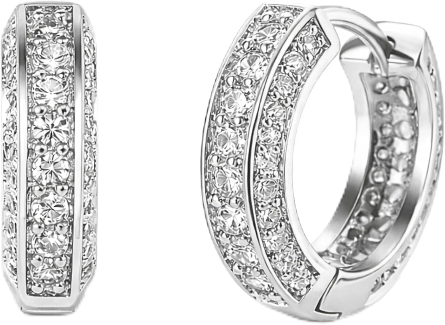 Upgrade your everyday style with these 14K gold plated CZ hoop earrings for men. Designed with a bold double row of sparkling cubic zirconia stones, these huggie hoop earrings deliver a clean and modern look that stands out without being oversized. The compact huggie design sits comfortably close to the ear, making them perfect for daily wear. Lightweight and secure, these small hoop earrings are easy to wear all day while adding the right amount of shine to casual outfits or night looks. Crafted with durable 14K gold plating and high quality cubic zirconia stones, these men's hoop earrings offer long-lasting brilliance and resistance to tarnish. The secure clasp keeps the earrings in place for reliable everyday use. These men's CZ hoop earrings pair well with streetwear, casual outfits, and modern fashion styles. Whether worn alone or stacked with other earrings, they create a confident and stylish statement. Each pair comes ready for gifting, making them a great jewelry gift for birthdays, holidays, or special occasions.