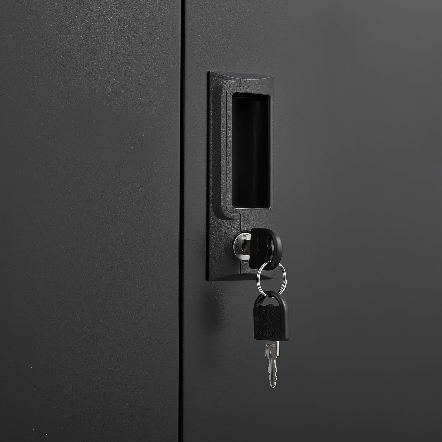 Keep your space organized and secure with this versatile Storage Locker Cabinet, designed for home, office, school, or garage use. Featuring two adjustable shelves, this cabinet supports multi-level height customization to accommodate items of varying sizes, from tools and supplies to documents and personal belongings. The double-door design includes a sturdy security lock with two keys, ensuring private items stay protected. Its integrated molding process enhances durability, while the anti-detachment cabinet door and large opening angle provide easy access and safe operation.The solid lock rod protrudes outward when locked for added security and hides inside when opened, making it resistant to prying and cutting. Inside, two movable partitions offer flexible storage for small to medium-sized items. Compact and easy to transport, this cabinet maximizes space efficiency without sacrificing strength. Ideal for garages, classrooms, or entryways, it combines functionality with a sleek, modern aesthetic. Upgrade your organization with this heavy-duty, lockable storage solution today!
